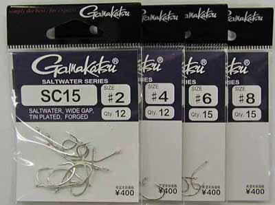 ガマカツのソルト用フック、SC15を全サイズ在庫します。
