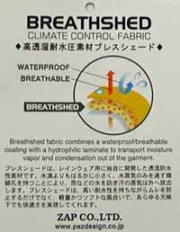 ブレスシェードは、レインウェア用に開発された高透湿耐水圧素材のことで、