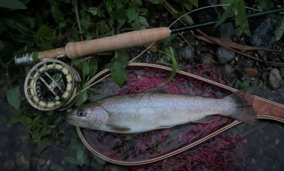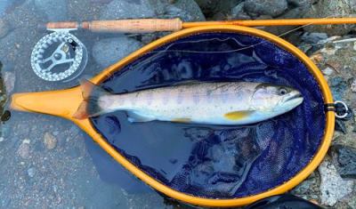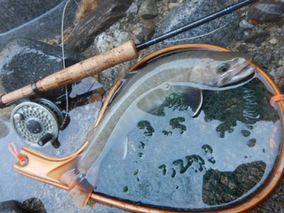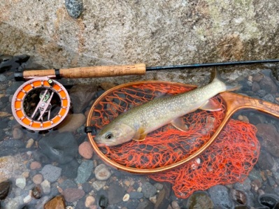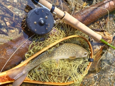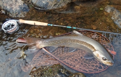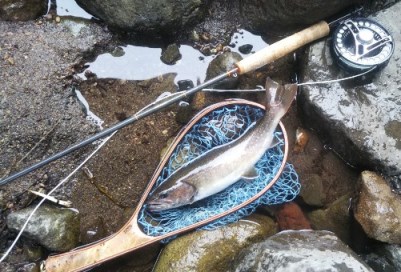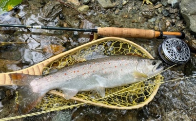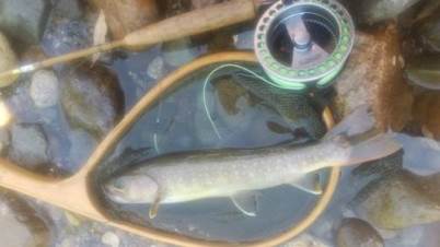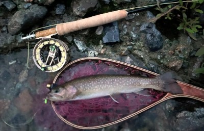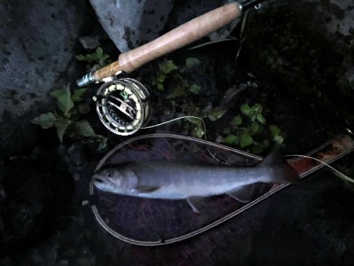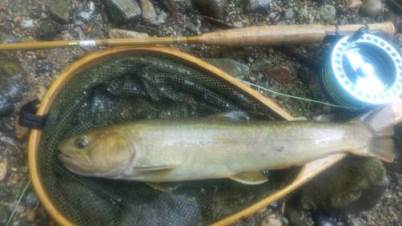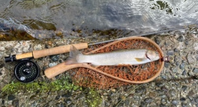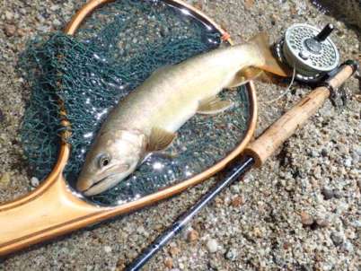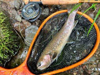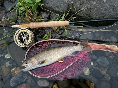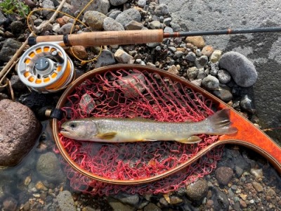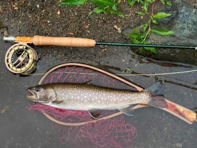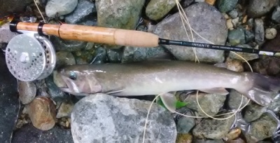 | フィッシャー:水野様 日時:08/24 釣果:イワナ34cm 釣り場:庄川支流 店主コメント:またまたゲット、おめでとう! ウィンストンエアー2 863/4は完全にアタリ竿ですね。 |