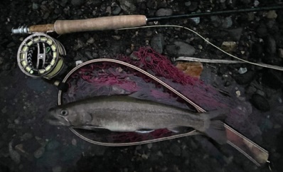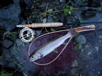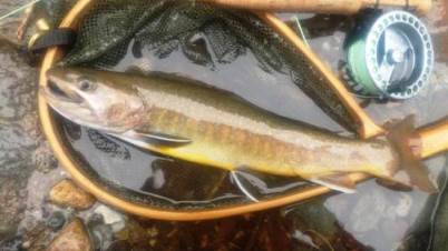 | フィッシャー:Maksim様 日時:09/22 釣果:イワナ31cm 釣り場:九頭竜水系 ヒットフライ:#18カディス 店主コメント:最後にゲットでおめでとう! |
