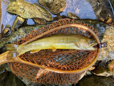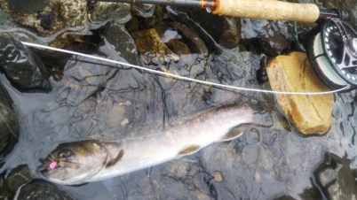 | フィッシャー:水野様 日時:04/13 釣果:イワナ30cm 釣り場:庄川支流 ヒットフライ:#13QBP 店主コメント:頑張ってご飯を食べてね。 |