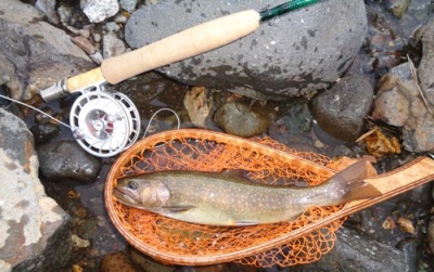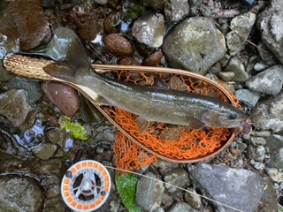 | フィッシャー:小牧のA様 日時:06/18 釣果:イワナ31.5cm 釣り場:益田川支流 ヒットフライ:#12ガバナー 店主コメント:さすが、ウェットの名手! |